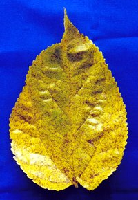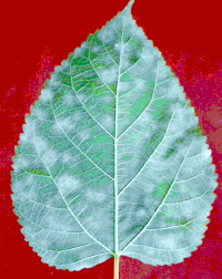| Symptoms | White powdery patches appear on the lower surface of the leaves. The corresponding portions on the upper surface develop chlorotic lesions. When severe, the white powdery patches turn to brownish-black; the leaves become yellow, coarse and loose their nutritive value. |