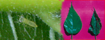 | Occurrence & Symptoms | The name white fly is derived from the whiter appearance of the adults and their tendency to fly when disturbed. Adults have a pair of floury wings which are usually white with a few veins. In the recent years outbreak of Dialeuropora decempuncta has occurred on mulberry in southern state of Kerala and Karnataka.The spiraling of waxy material is the typical symptom of white fly attack. Prolonged dry spell followed by the hot humid weather favours the white fly flare up. Occur during the months March-June; October-December. Both nymphs and adults pierce and suck the sap from foliage and the damaged leaf become unfit for silkworm rearing. |